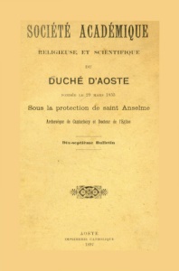 SOCIÉTÉ ACADÉMIQUE 1'>]'1 }( ' l l'lT 0 l ' J·','I' P( ' f]~,~T' ['lF. J (\{ T"G: ). •, ' If ~ ..., ..,_ ·~ " ' '{ l'J nu ÔUCHÉ D'AOSTE Sous la protect ion de saint Anselme Archevêque de Cautorbèry et Docteur de l'Eglise J)h:-11e1•ti(>1ne B ulletin AO STE D l l'HI.llE RU . C'ATIWJ.l'-'1 ~ 18~ï
